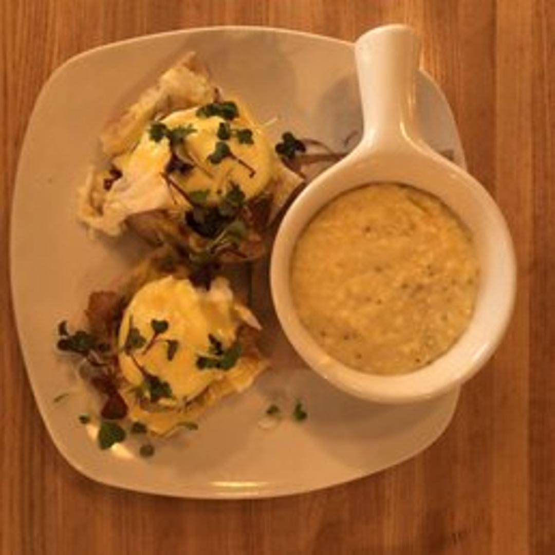 A classic brunch staple, featuring perfectly poached eggs and a rich, creamy hollandaise sauce. Traditionally served atop toasted English muffins, at The Pig, this dish often includes a savory, house-cured pork or ham, adding a distinctive depth of flavor to this beloved and indulgent breakfast or brunch item.