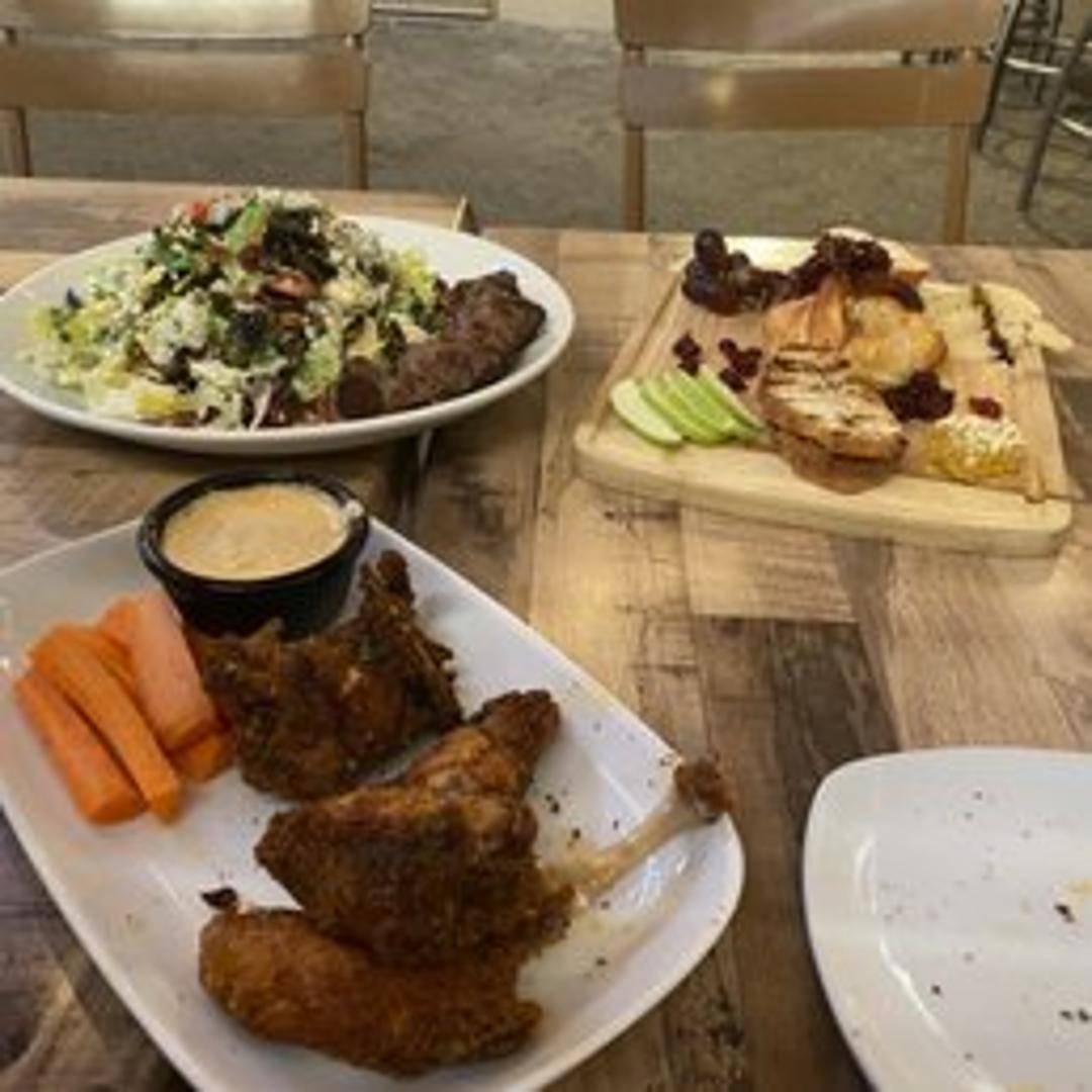 A vibrant and satisfying salad featuring tender, perfectly grilled steak slices atop a bed of crisp greens and roasted Brussels sprouts. Dressed with a light vinaigrette, it's a harmonious blend of textures and robust flavors.