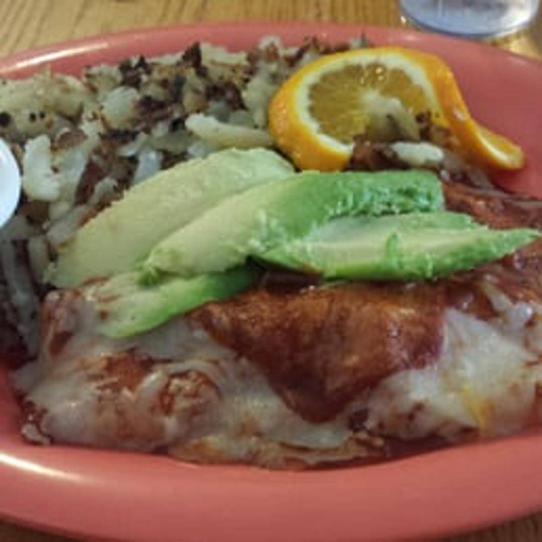 Two corn tortillas filled with scrambled eggs and cheese, smothered in your choice of red or green enchilada sauce. Served with rice and beans.