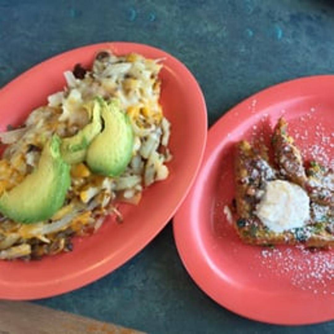 A mountain of potatoes topped with your choice of chili, cheese, bacon, onions, sour cream and eggs.