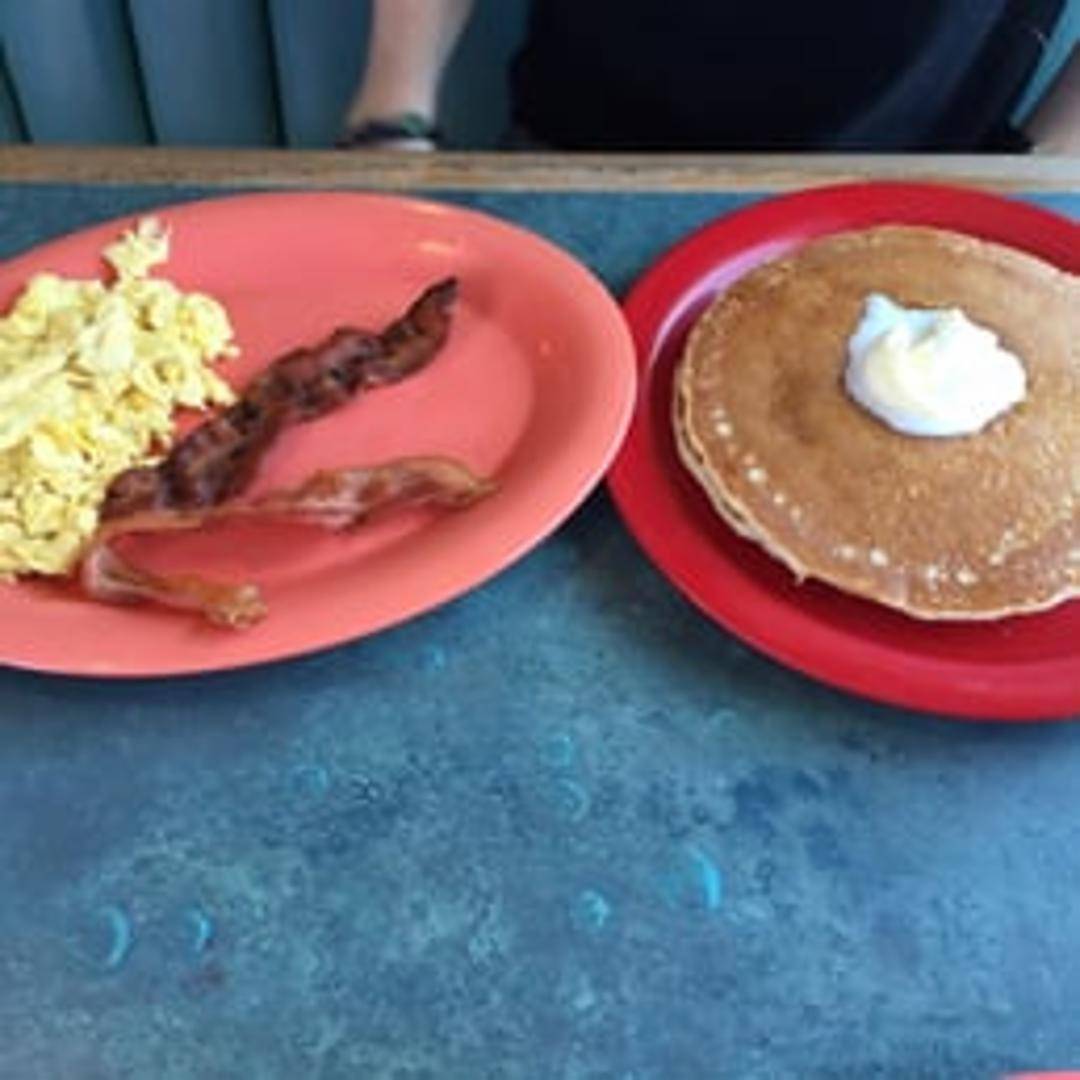 A generous scramble of eggs, potatoes, cheese, and your choice of bacon, sausage, or ham.