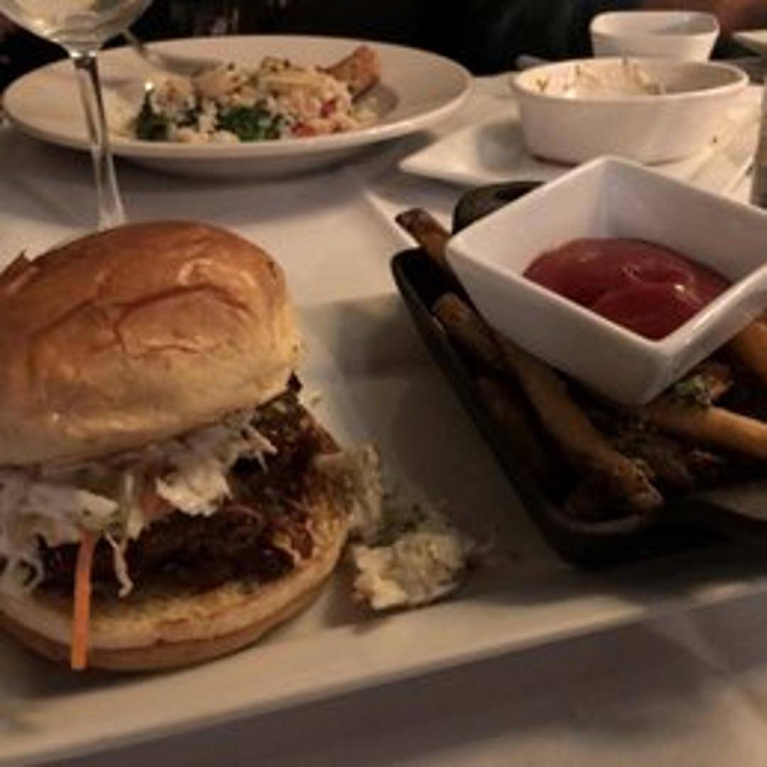 Slow-cooked, tender lamb shoulder, shredded and tossed in a tangy, house-made BBQ sauce. Served on a toasted roll with creamy coleslaw and crispy fried onions.