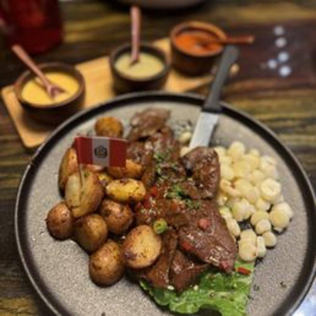 Grilled beef heart skewers marinated in Peruvian spices. Tender and flavorful.