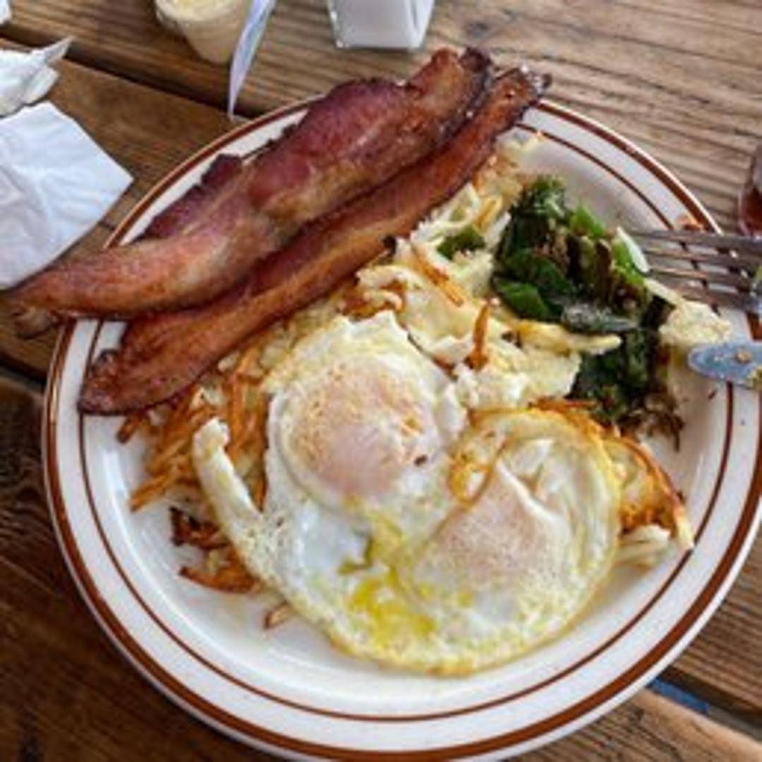 Thick slices of bread dipped in a rich egg batter, grilled to a golden brown and dusted with powdered sugar. Served with butter and syrup.