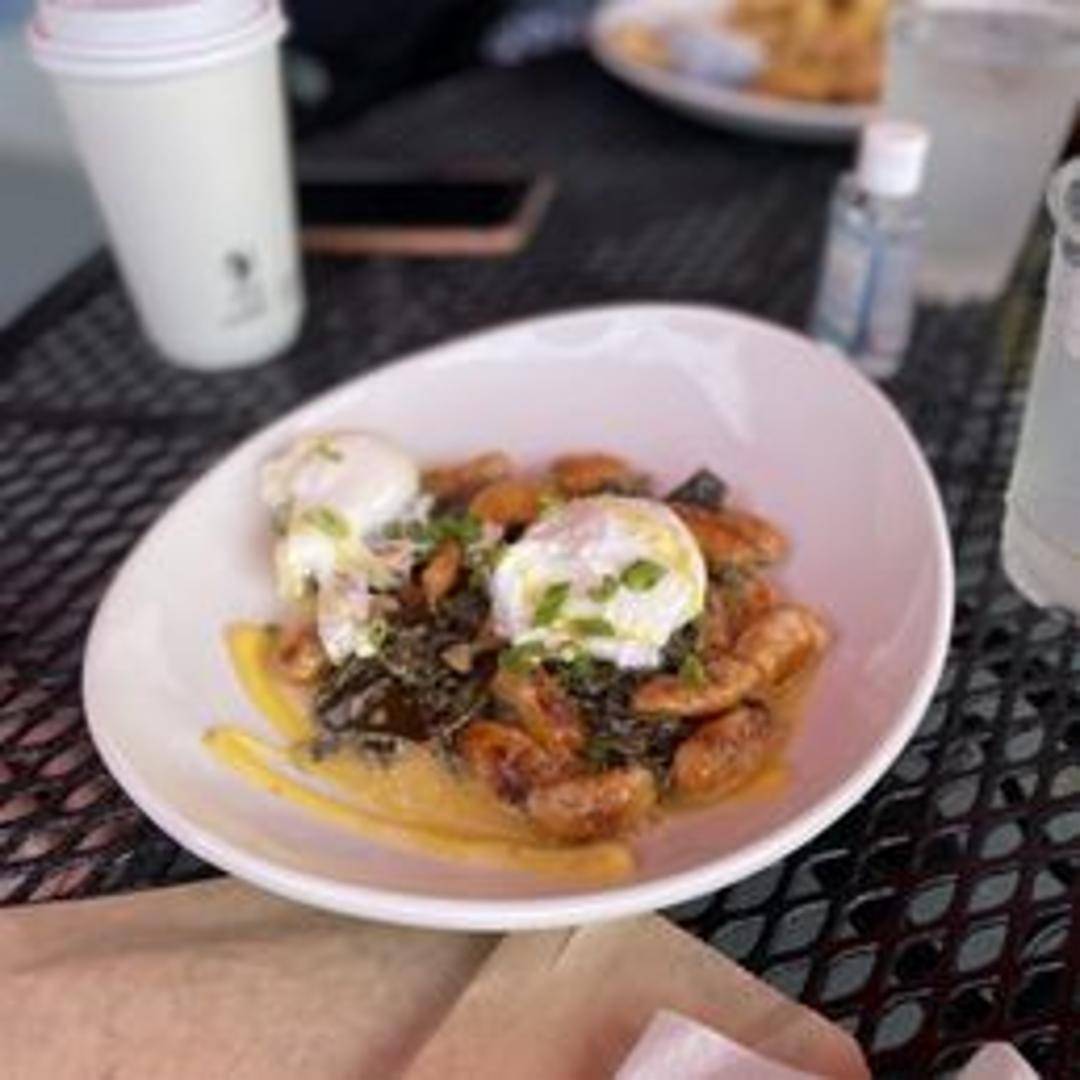 A vibrant and inventive take on a brunch classic. Our Sweet Potato Benedict features two perfectly poached eggs nestled atop crispy, seasoned sweet potato patties, instead of traditional English muffins. Drizzled generously with a rich, velvety hollandaise sauce and garnished with fresh chives, offering a harmonious blend of savory and subtly sweet notes.