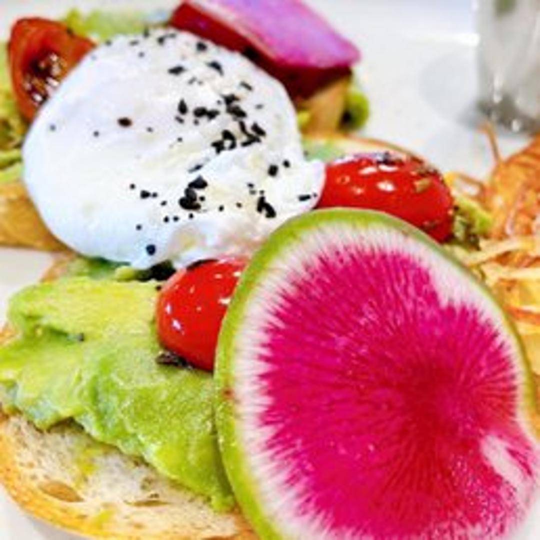 A beloved classic, elevated. Our Avocado Toast begins with a thick slice of artisanal sourdough bread, lightly toasted to perfection. It's generously spread with freshly smashed, ripe avocado, seasoned simply with flaky sea salt, black pepper, and a sprinkle of red pepper flakes for a subtle kick. Finished with a drizzle of high-quality olive oil and fresh microgreens for a touch of vibrancy.