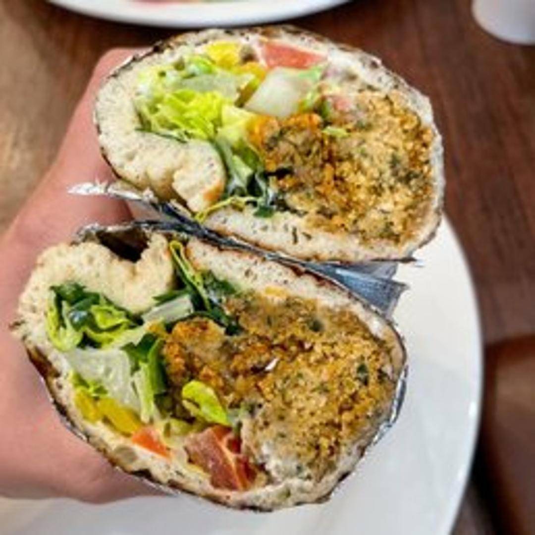 Crispy falafel balls stuffed in warm pita bread with hummus, tahini sauce, lettuce, tomatoes, and pickles. A delicious and satisfying vegetarian sandwich.