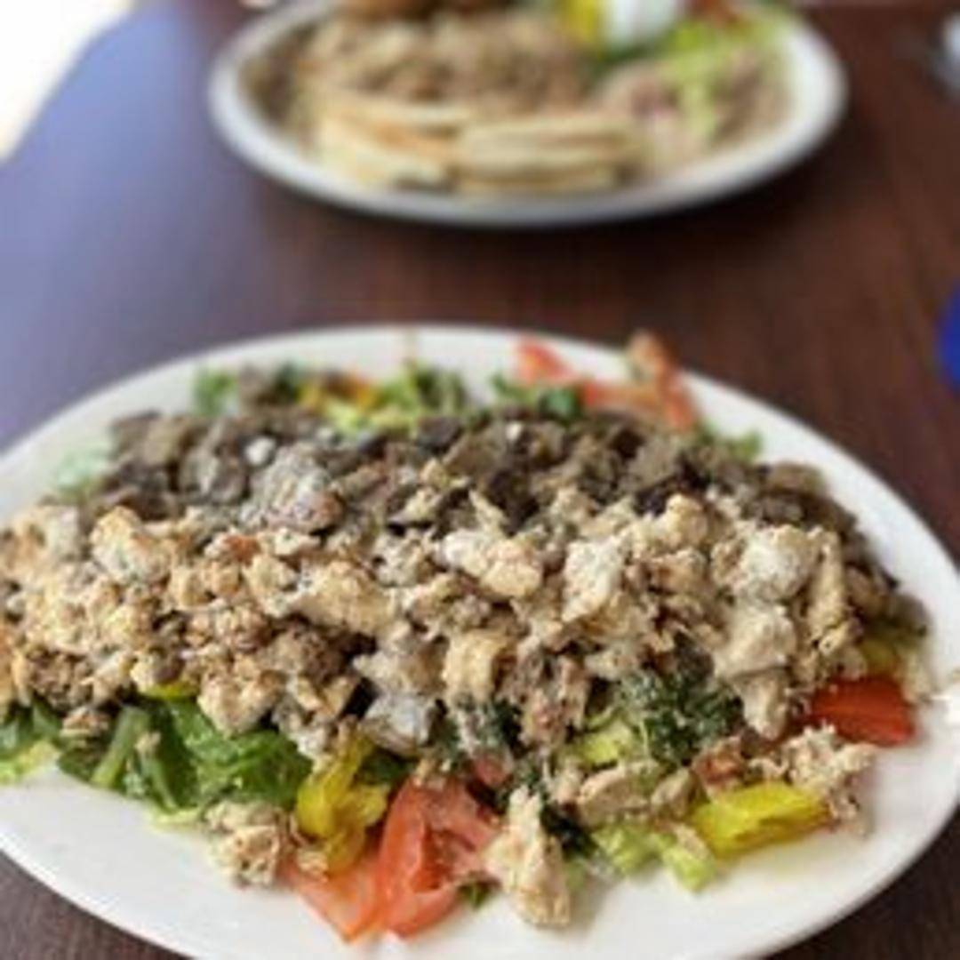 A refreshing salad featuring mixed greens, tomatoes, cucumbers, onions, and your choice of dressing. A light and flavorful vegetarian option.