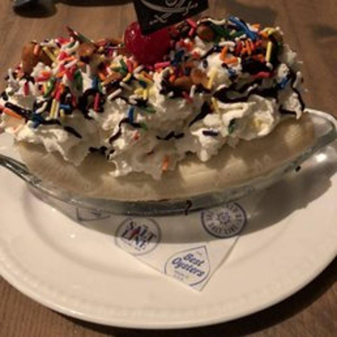 A classic dessert reimagined, featuring ripe, halved bananas flanking generous scoops of premium ice cream (typically vanilla, chocolate, and strawberry). Drizzled with decadent chocolate, caramel, and strawberry sauces, then crowned with a cloud of whipped cream, chopped nuts, and a maraschino cherry for the perfect sweet indulgence.