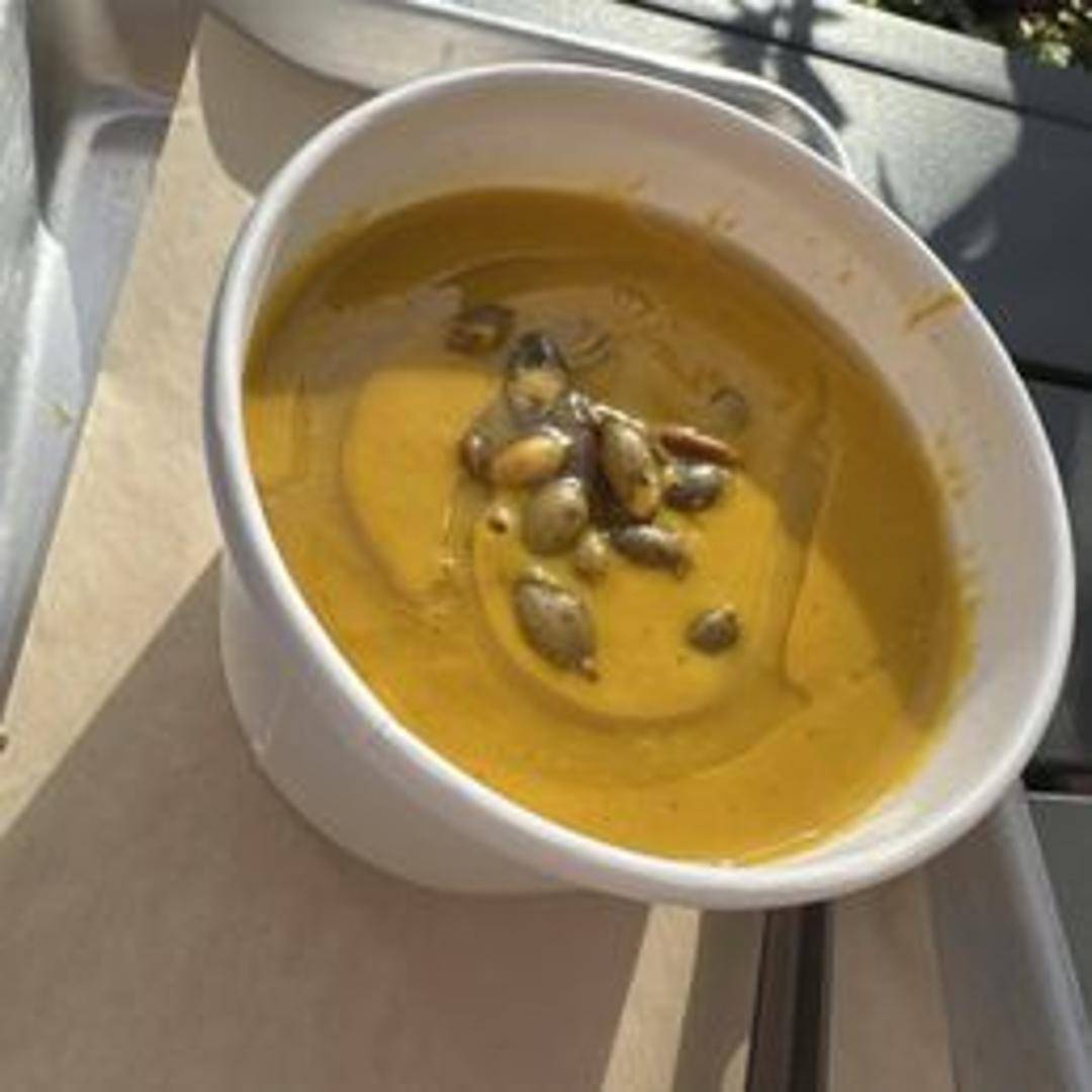 Creamy and comforting seasonal squash soup, blended with warm spices, a hint of maple syrup, and garnished with toasted pumpkin seeds and a swirl of crème fraîche.