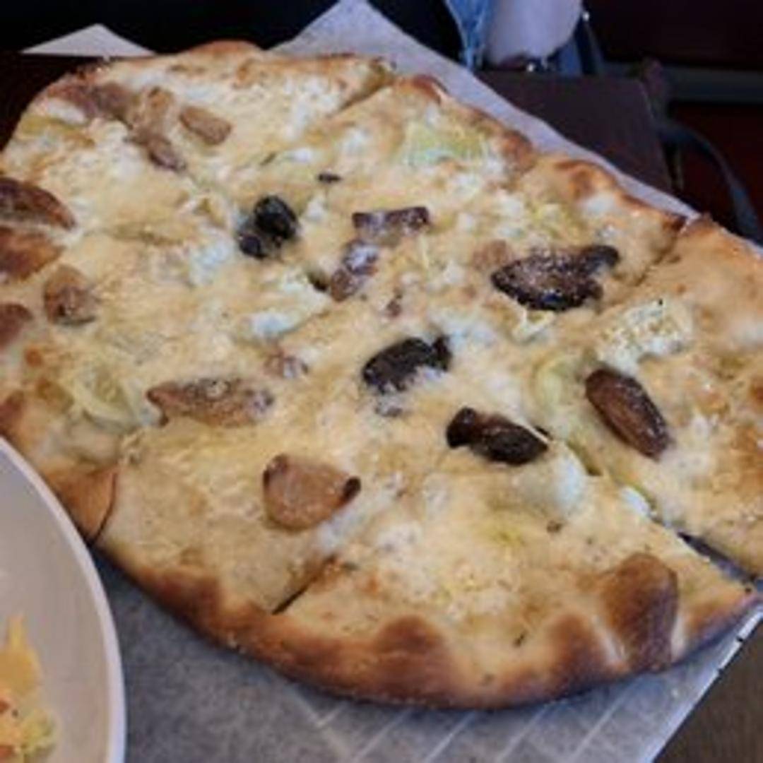 A flavorful pizza featuring a generous helping of roasted garlic, premium cheeses, and a perfectly baked crust. Enjoy the rich and savory taste in every bite.