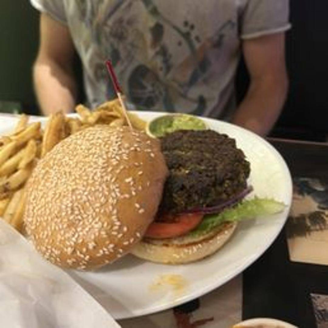 Our signature veggie burger made with a blend of grains, vegetables, and spices, topped with lettuce, tomato, onion, and our secret sauce, served on a toasted bun. Vegan option available.