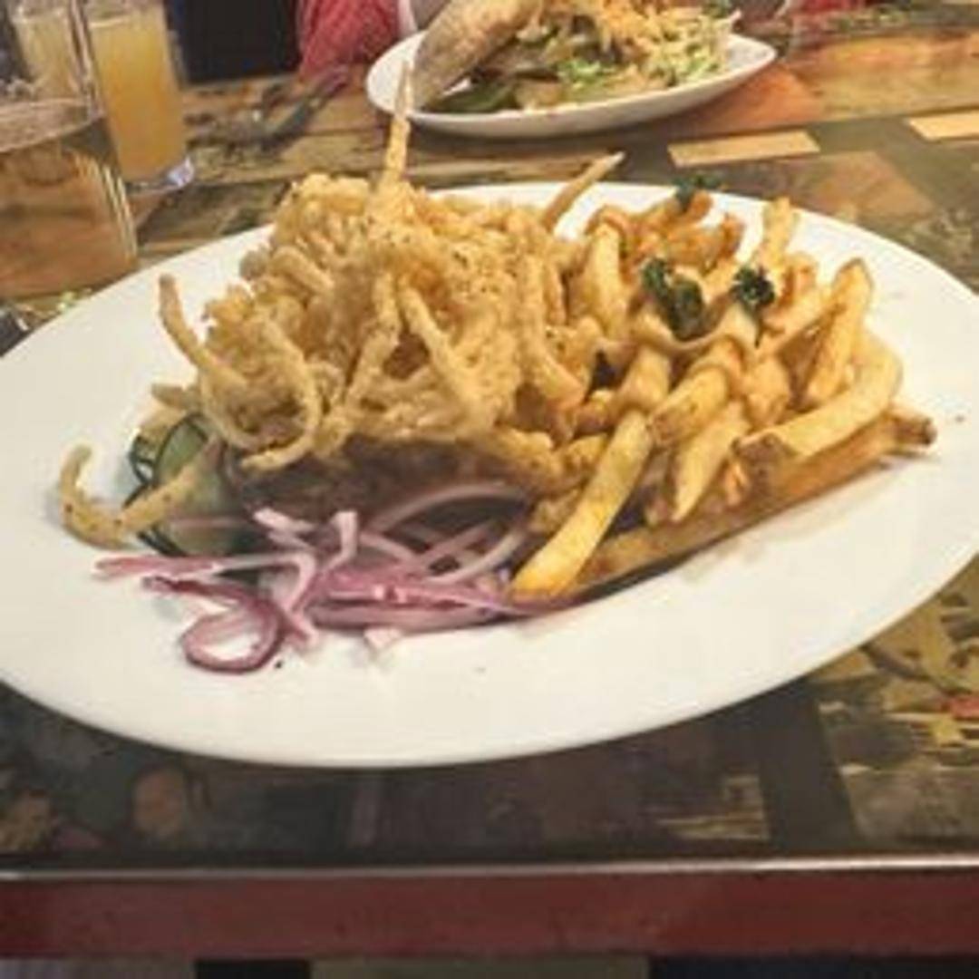A deconstructed burger featuring a grass-fed beef patty served over a bed of quinoa or rice, topped with your choice of fresh vegetables, cheese, and a drizzle of our house-made sauce.