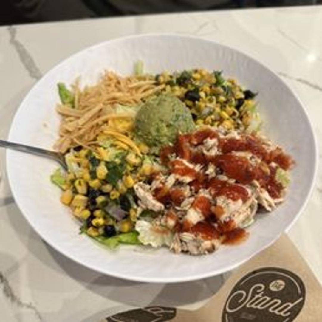 Grilled chicken, mixed greens, black beans, corn, tomatoes, avocado, and crispy tortilla strips tossed in a zesty Southwest dressing.