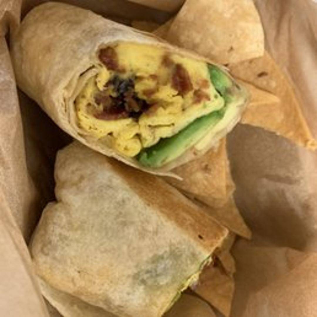 A hearty burrito filled with scrambled eggs, your choice of protein (bacon, sausage, or chorizo), melted cheddar cheese, and roasted potatoes, all wrapped in a warm flour tortilla. Served with your choice of salsa.