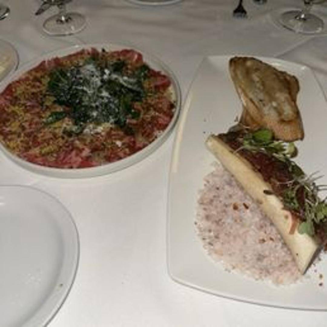 Thinly sliced, raw beef tenderloin, drizzled with extra virgin olive oil, and lemon juice. Garnished with capers, shaved Parmesan cheese, and arugula.