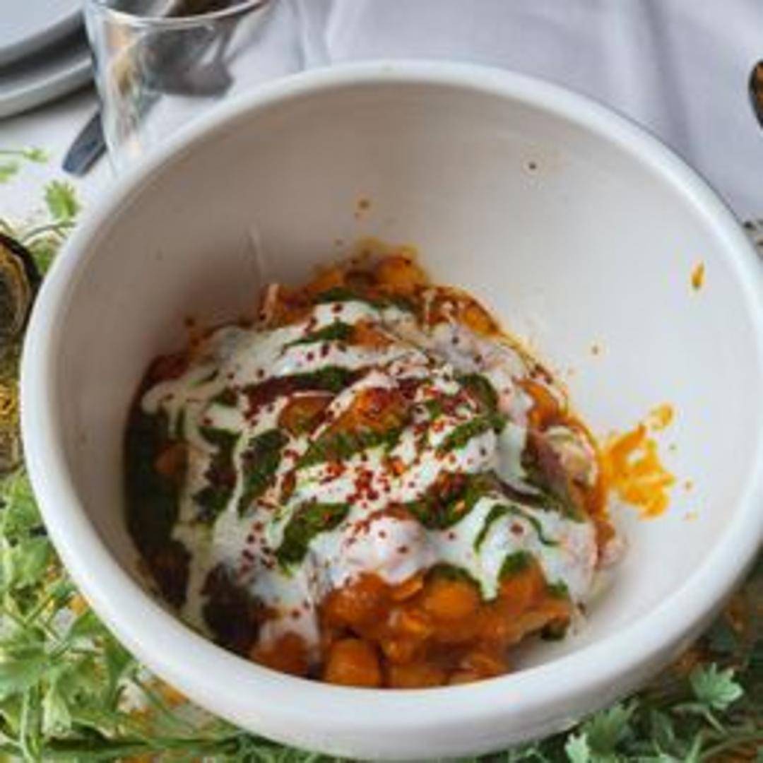 Crumbled pinwheel samosas topped with yogurt, chutneys (tamarind, mint-coriander), onions, and sev (crispy chickpea noodles) for a burst of sweet, tangy, and spicy flavors.