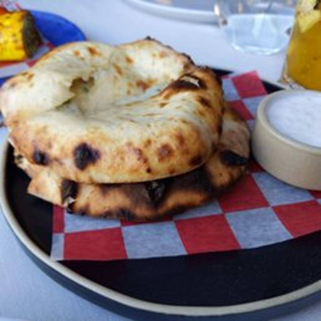 Leavened flatbread stuffed with a spicy and savory mixture of cheese and chili, cooked in a tandoor oven.