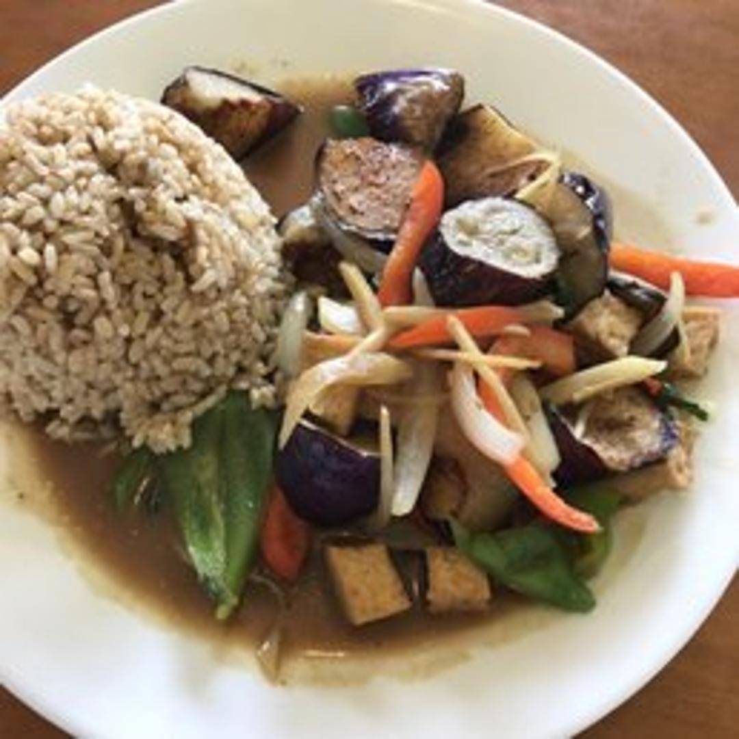 Tender eggplant stir-fried with chili peppers, garlic, onions, and a savory sauce. A spicy and flavorful dish perfect as a side or main course, often served with rice.