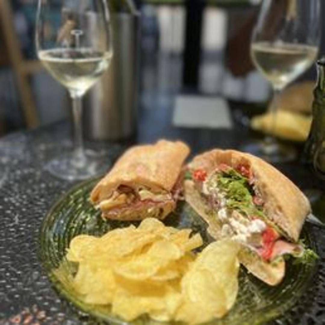 Fresh mozzarella, ripe tomatoes, basil leaves, and balsamic glaze on toasted focaccia bread.