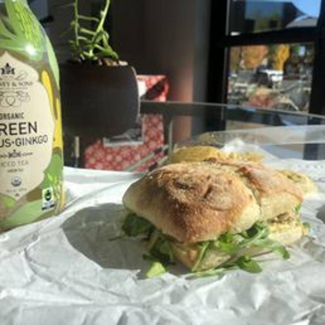 A sophisticated sandwich featuring our savory plant-based ham, tender artichoke hearts marinated in herbs and garlic, melted provolone-style vegan cheese, and a delicate lemon-herb aioli. All served on a fresh baked roll.