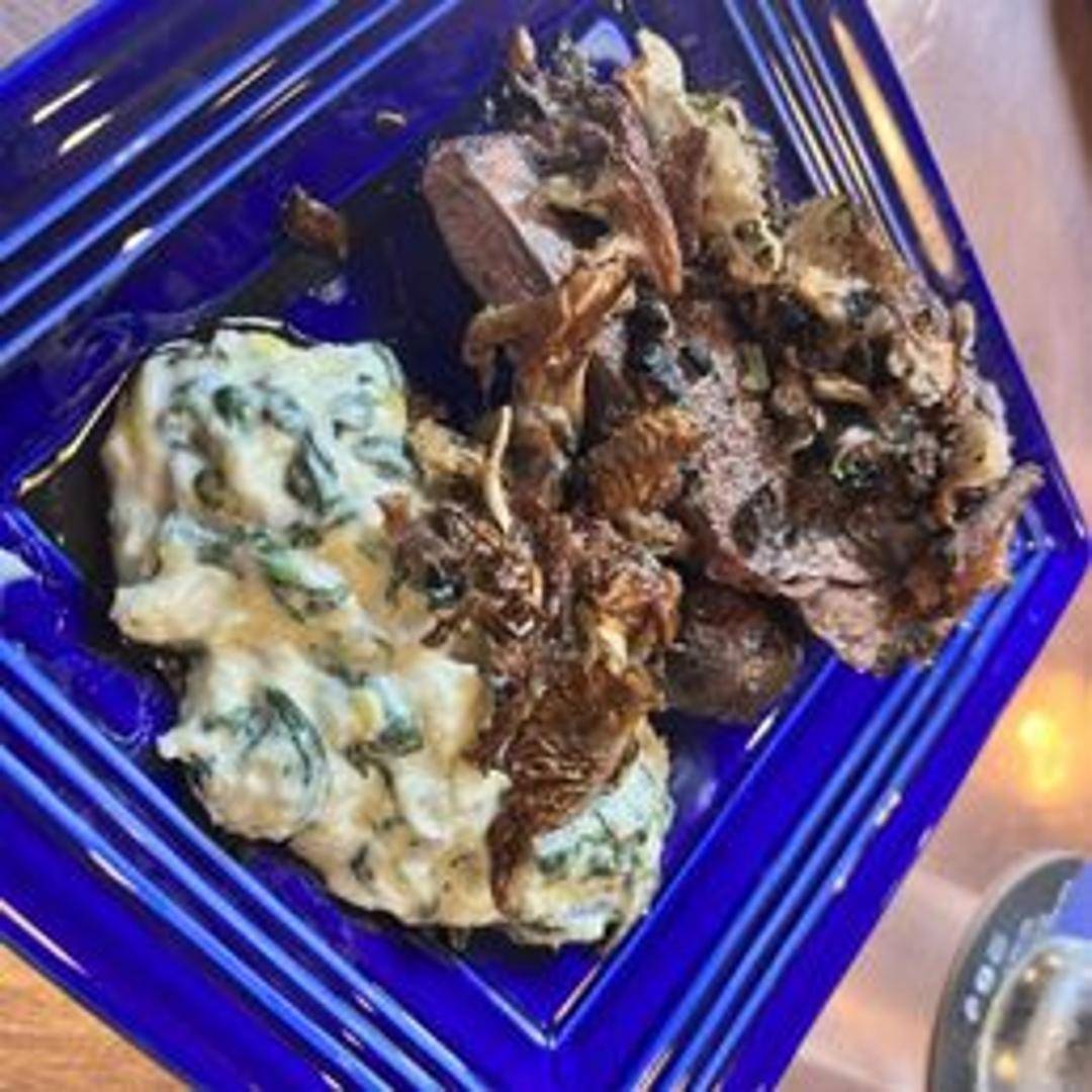 A flavorful and tender cut of bison ribeye, grilled to your preferred temperature and seasoned with herbs and spices.