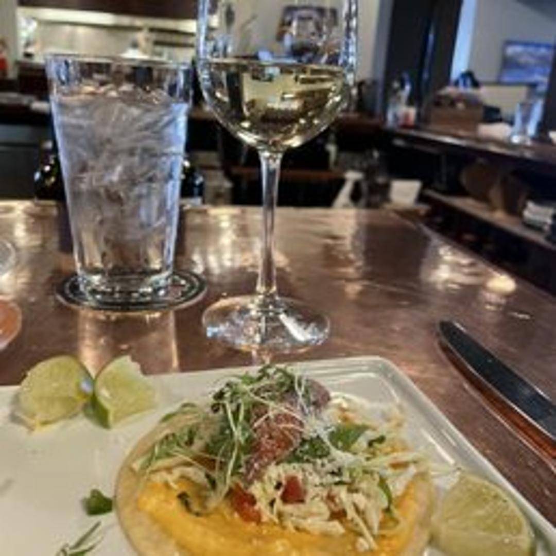 Flaky steelhead trout dusted with blue cornmeal, pan-seared and served in warm tortillas with fresh toppings and a zesty sauce.