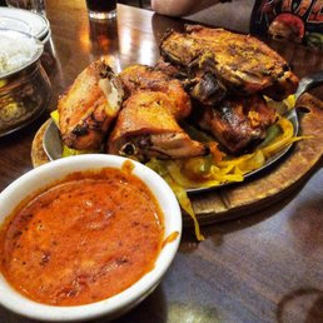 Chicken wings marinated in yogurt and tandoori spices, then cooked in a tandoor (clay oven) until tender and slightly charred. Served with a side of mint chutney or raita.