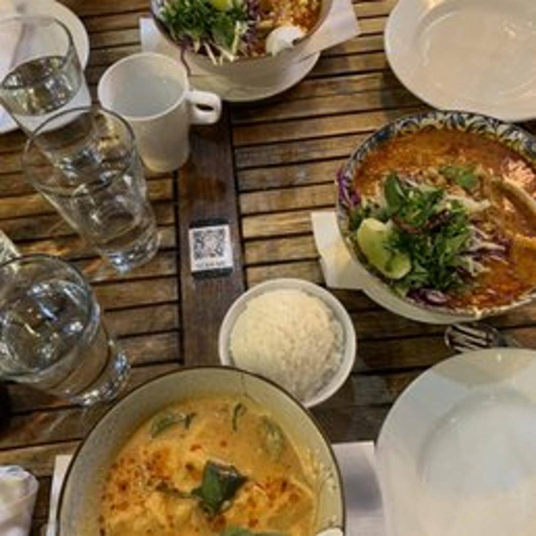 A classic and popular red curry, Gaeng Phet boasts a rich and spicy coconut milk-based broth, simmered with tender pieces of protein (commonly chicken, beef, or pork) or vegetables. The vibrant red color comes from a potent red chili paste, balanced with aromatic ingredients like kaffir lime leaves, bamboo shoots, and fresh Thai basil, offering a harmonious blend of spicy, savory, and subtly sweet flavors.