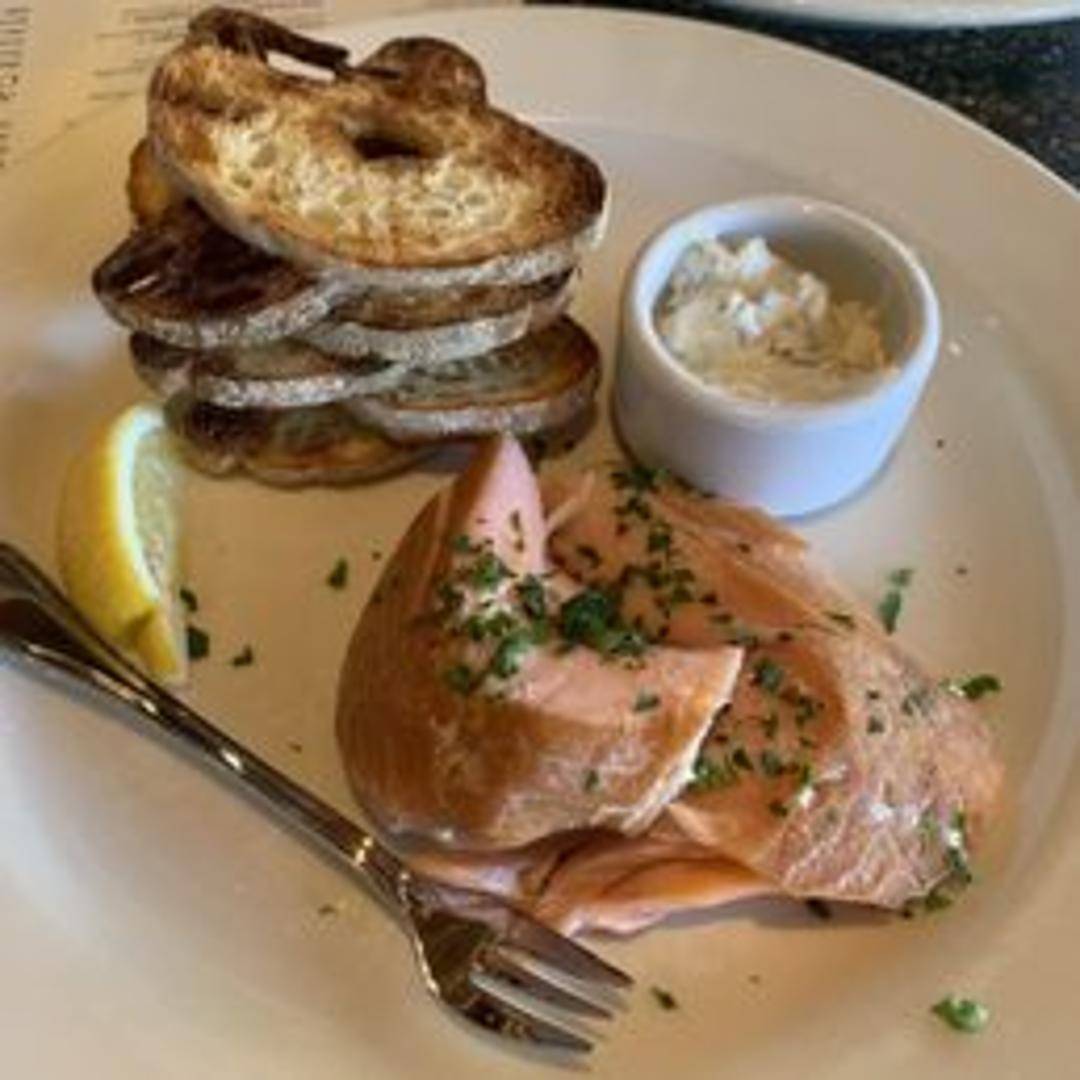 Delicately cold-smoked salmon, artfully arranged and served with traditional accompaniments such as briny capers, thinly sliced red onion, a dollop of crème fraîche, and a side of toasted artisan bread. A light and elegant choice perfect for sharing.