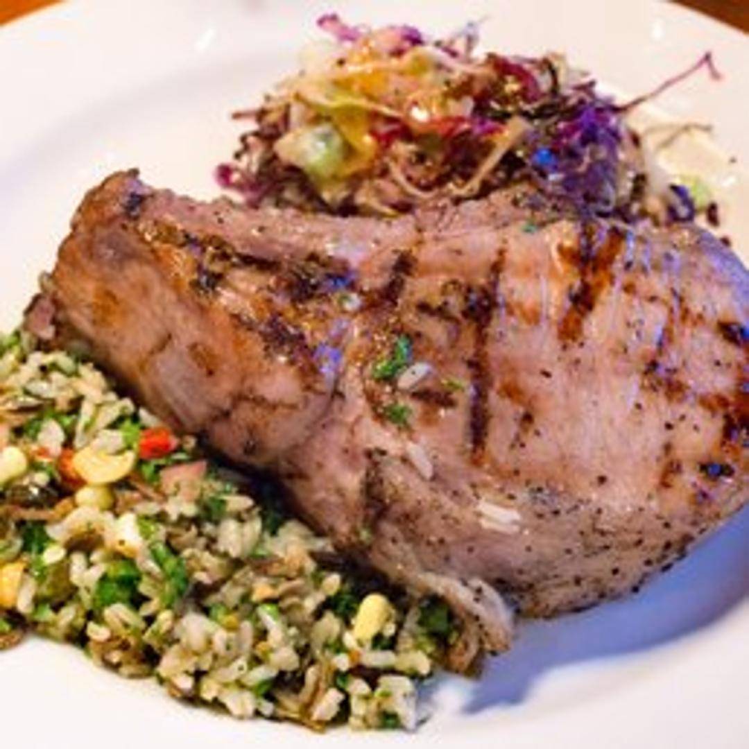 A succulent, thick-cut, bone-in pork chop, expertly grilled to juicy perfection and seasoned with our house blend of aromatic herbs and spices. Served with a savory pan jus and your choice of seasonal accompaniment, offering a hearty and satisfying main course.