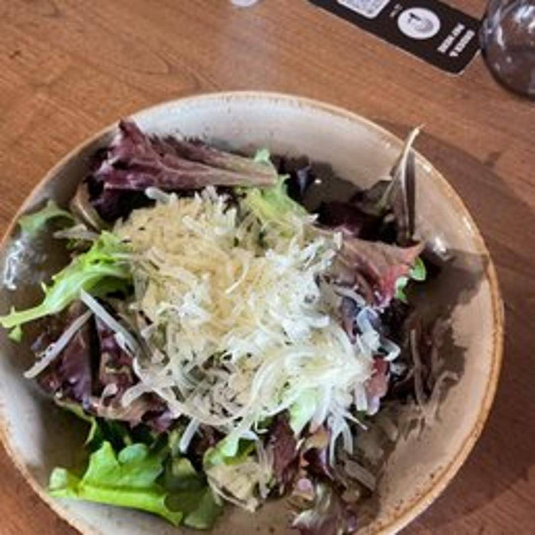Crisp romaine lettuce tossed in our creamy Caesar dressing with parmesan cheese and croutons. Add grilled chicken or shrimp for an additional charge.
