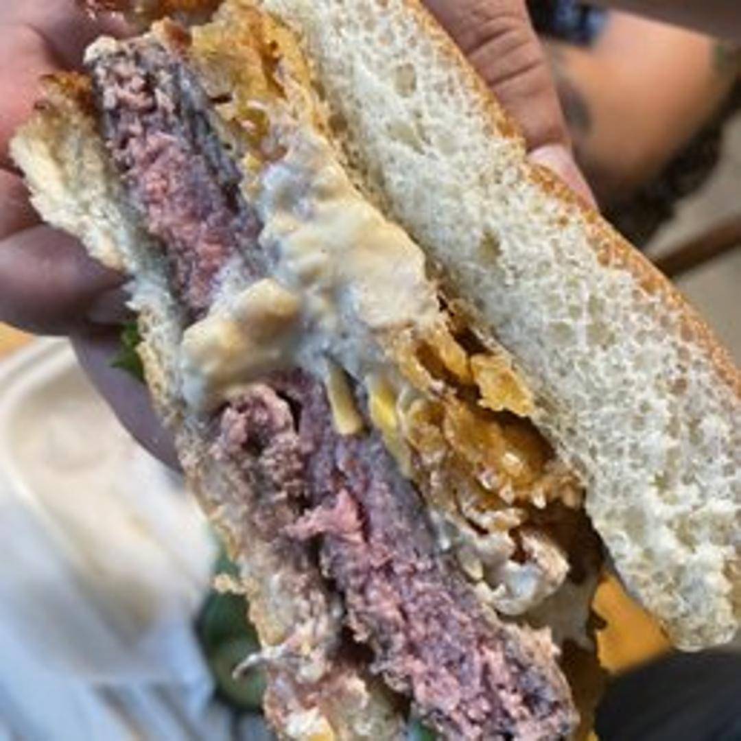 A juicy, hand-pattied burger cooked to rare doneness and topped with our homemade pimento cheese spread, lettuce, and tomato. Served on a toasted brioche bun.