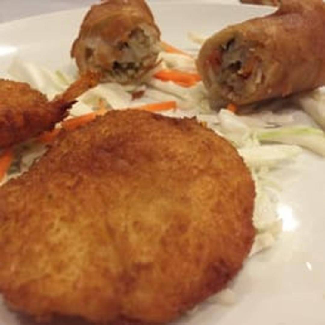 Crispy, golden-brown rolls filled with a savory mixture of shredded cabbage, carrots, celery, and seasoned pork or vegetables. Served with a sweet and sour dipping sauce.