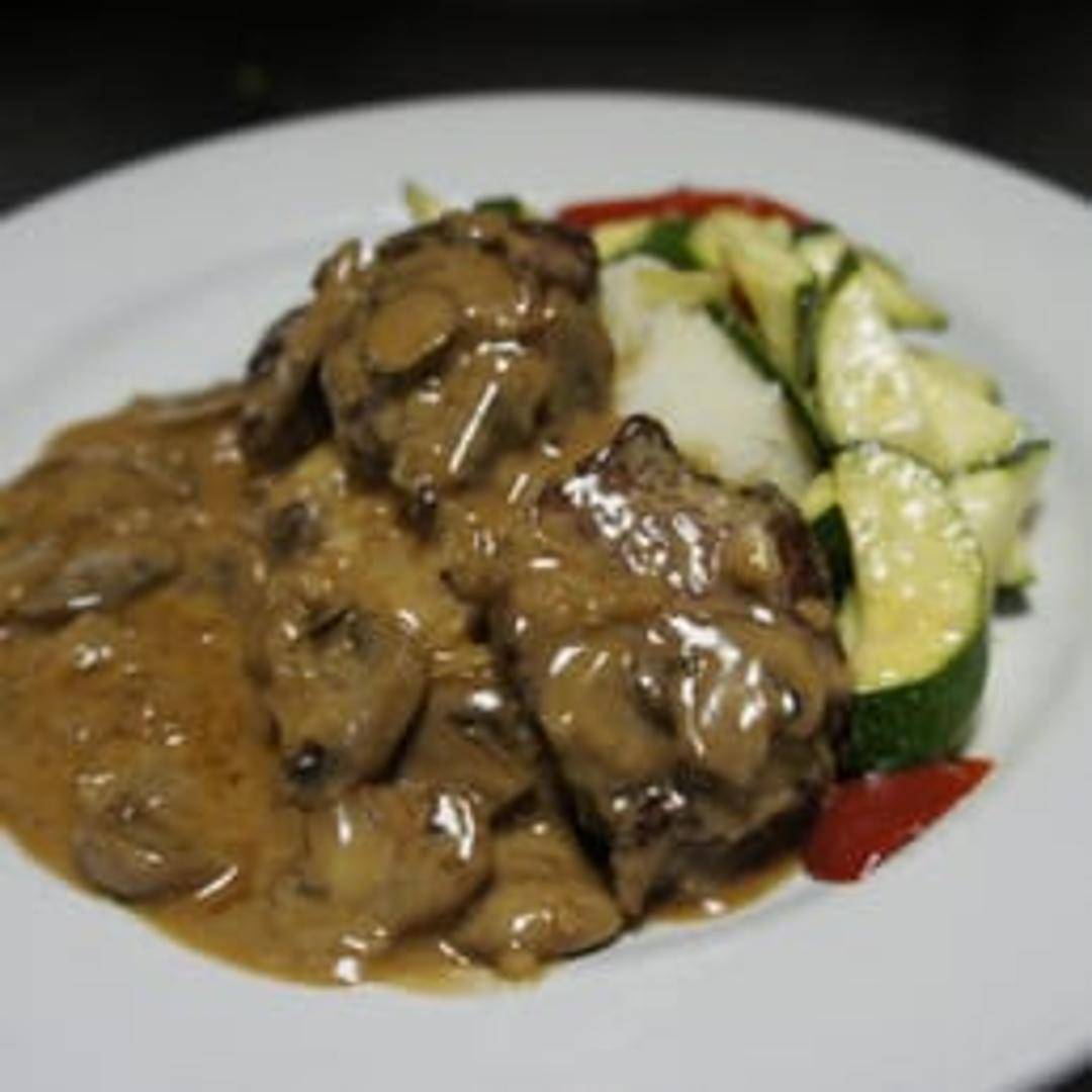 Tender beef medallions pan-seared and served with a rich pan sauce. Accompanied by your choice of two sides.