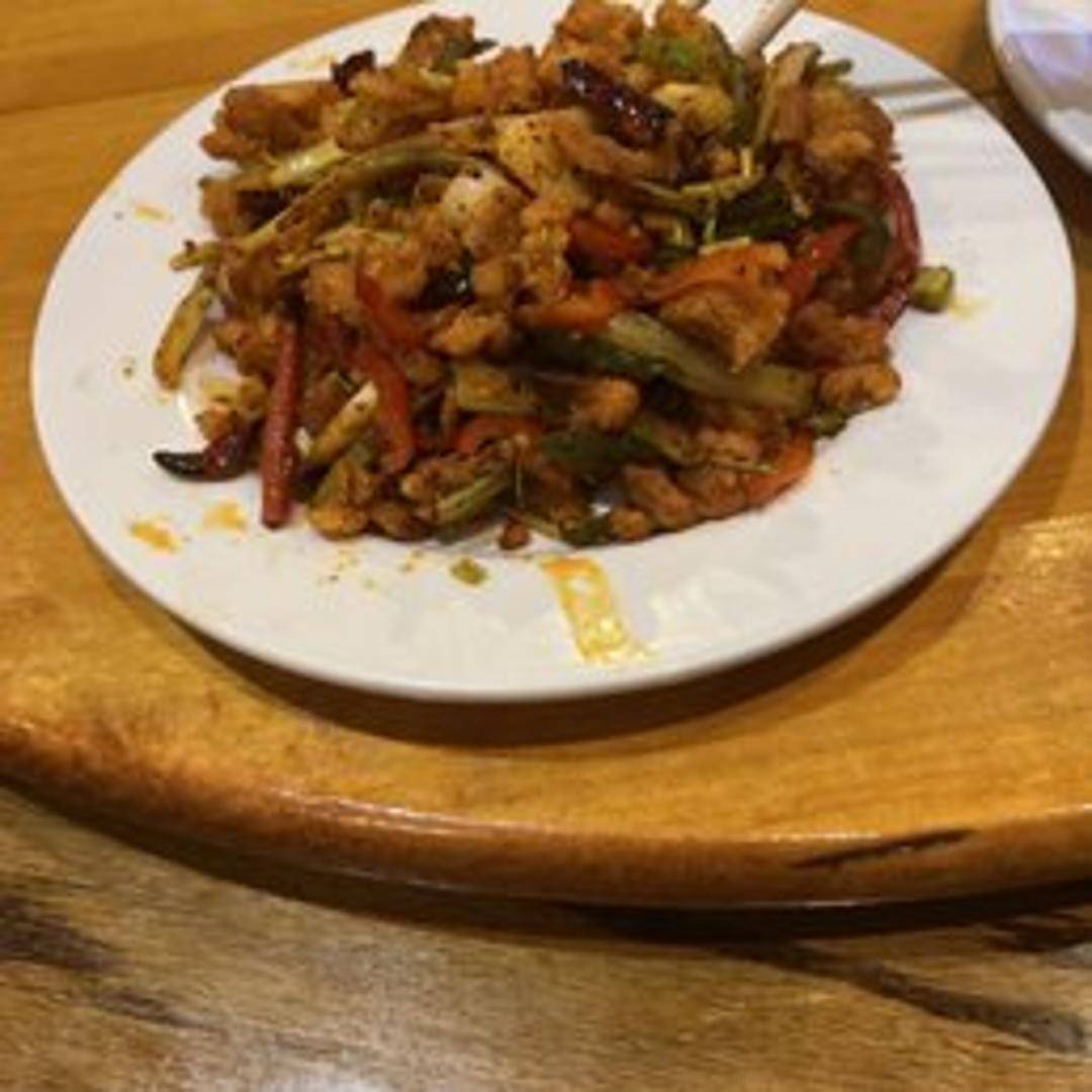 Crispy, deep-fried chicken pieces tossed in a spicy and flavorful sauce. The sauce often has a combination of sweet, savory, and spicy notes, possibly including chili peppers, garlic, ginger, and other seasonings. It's a special house creation.