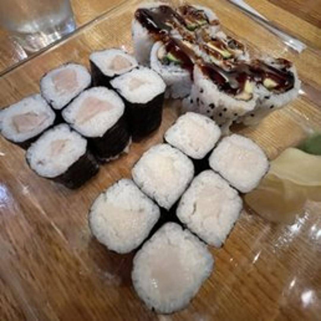 A classic sushi roll featuring fresh tuna, rolled with seasoned sushi rice and nori seaweed. Typically includes a small amount of wasabi. Cut into bite-sized pieces.