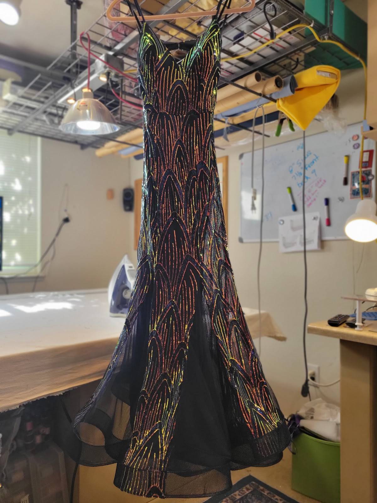 Step back into an era of unparalleled glamour with the Art Deco Sequin Evening Gown, an exquisite find from Timeless Wardrobe By Trish. This breathtaking gown perfectly encapsulates the opulence and distinctive elegance of the Roaring Twenties, adorned with shimmering sequins that catch the light with every movement. Its sophisticated silhouette, inspired by the iconic Art Deco period, features intricate detailing that ensures a head-turning entrance at any upscale event, gala, or special occasion. Crafted for timeless allure, this gown embodies the spirit of vintage luxury and refined style, making it a quintessential piece for the discerning fashion enthusiast.