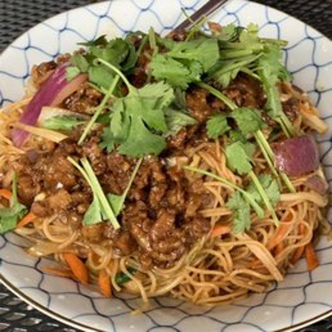 A comforting and light soup featuring delicate rice noodles submerged in a clear, flavorful broth, often garnished with fresh herbs, crisp vegetables, and a medley of ingredients to create a satisfying and wholesome meal.