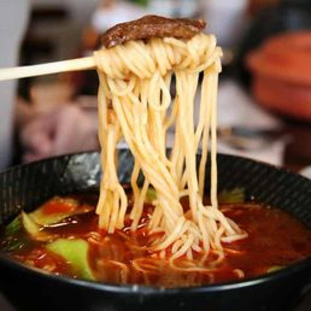 A hearty and aromatic bowl of traditional beef noodle soup, featuring tender slices of slow-cooked beef served over a generous portion of springy noodles in a rich, deeply flavored broth, garnished with fresh scallions and cilantro.