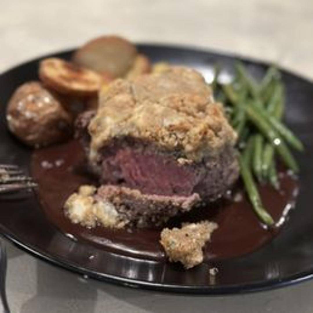Grilled beef tenderloin, cooked to your liking, and served with a red wine reduction sauce. Accompanied by seasonal vegetables and your choice of potato.