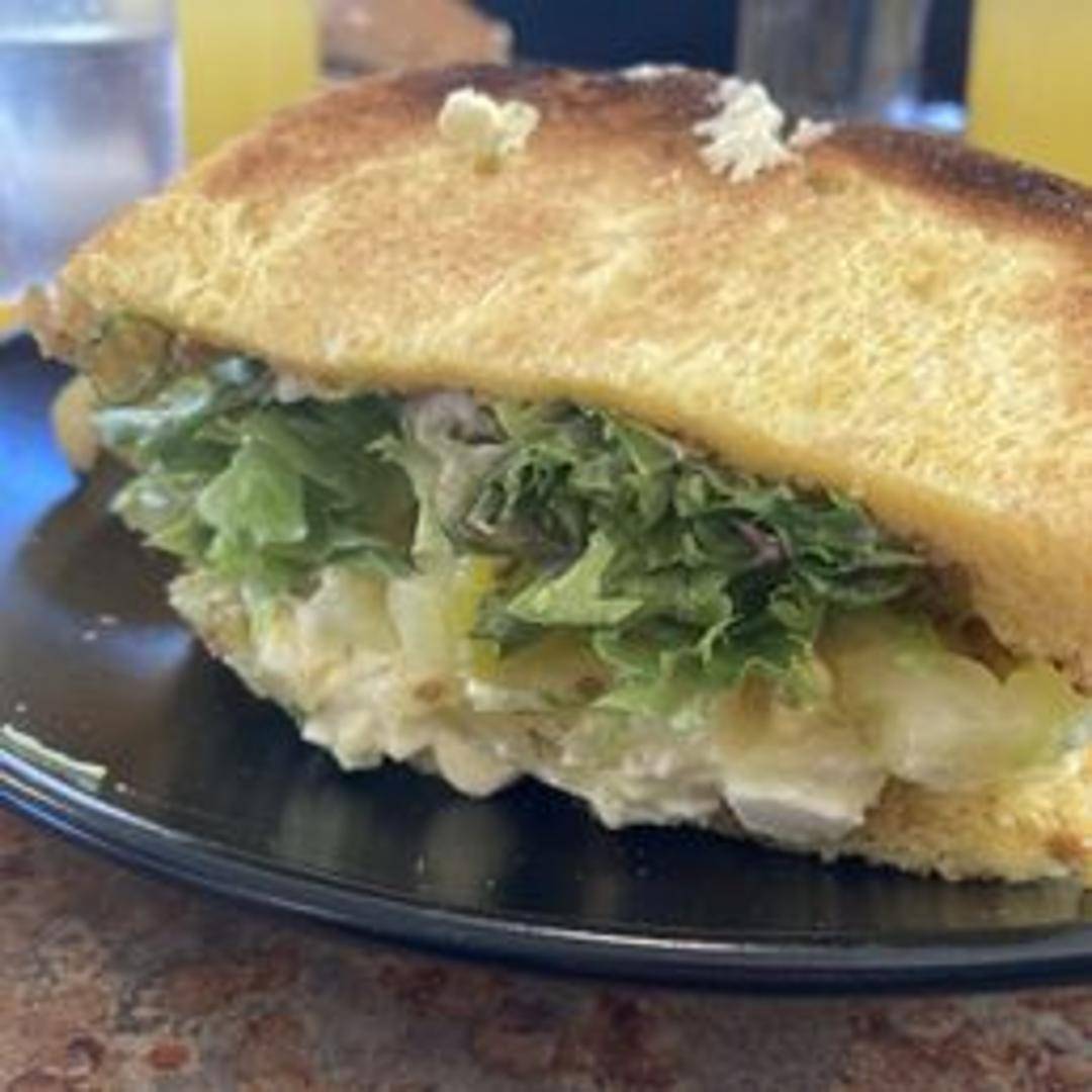Creamy deviled egg salad with a touch of mustard and herbs, served on your choice of bread with crisp lettuce.