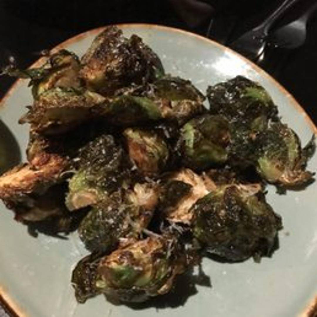 Crispy Brussels sprouts, often prepared with a flavorful glaze or seasoning. Specific preparation may vary but typically includes roasting or frying to achieve a tender interior and caramelized exterior.