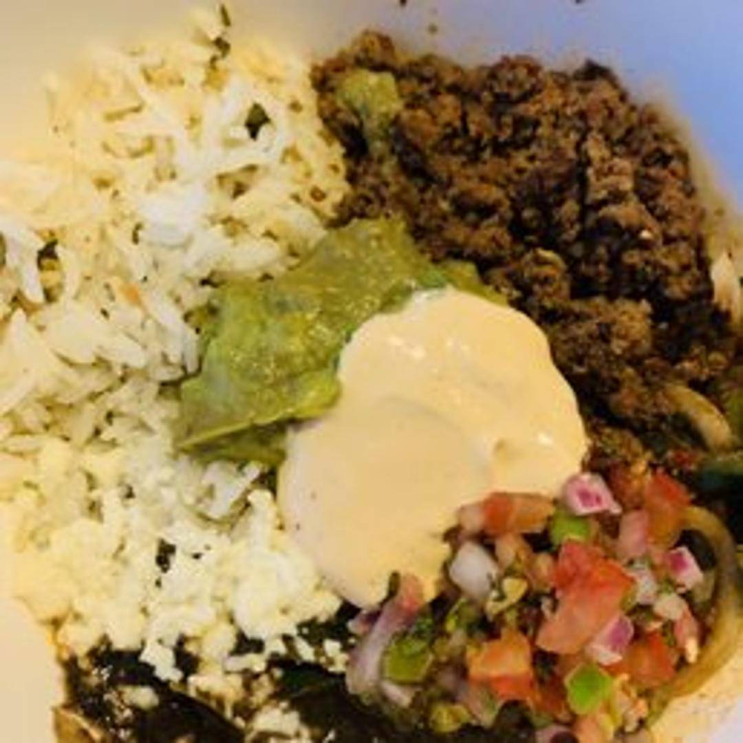 A vibrant and flavorful bowl featuring your choice of protein (chicken, steak, or plant-based options available), sautéed peppers and onions, Spanish rice, black beans, guacamole, pico de gallo, and a drizzle of cilantro-lime dressing. Served over a bed of crisp romaine lettuce. Gluten-free.