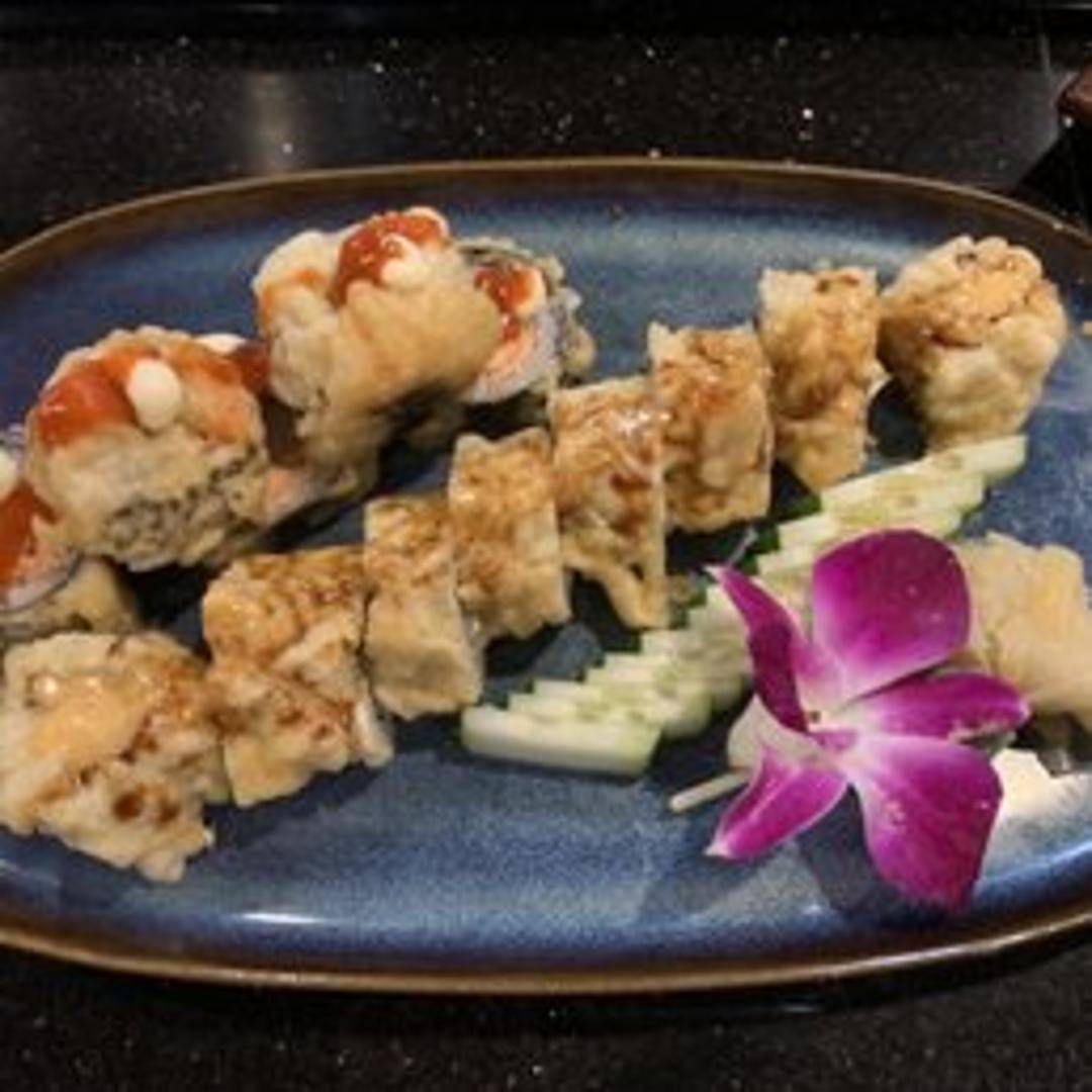 A sushi roll featuring cooked salmon and cream cheese. Often served with avocado, cucumber, or other vegetables. May be wrapped in nori seaweed and rice.