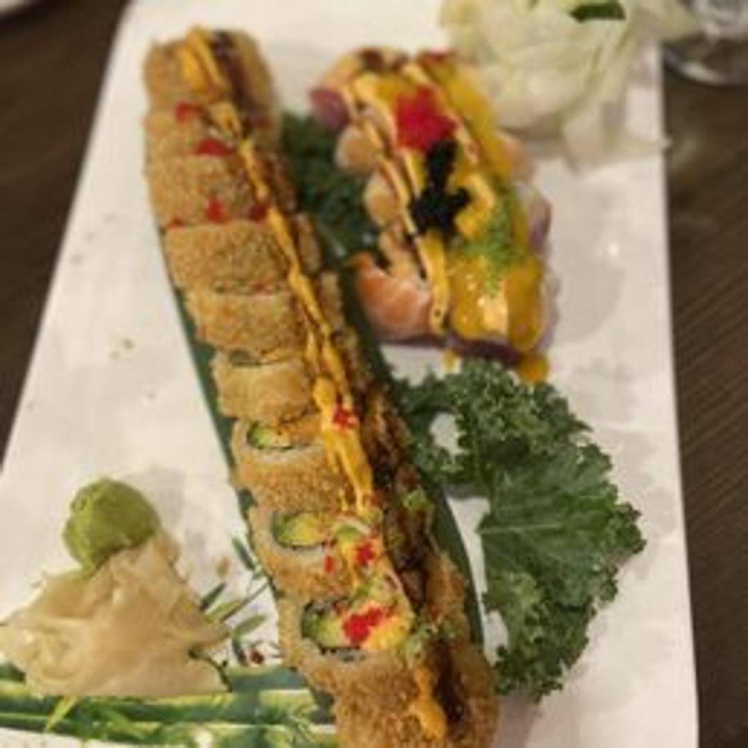 A flavorful sushi roll featuring a combination of various ingredients, possibly including seafood, vegetables, and a special sauce. Specific ingredients and preparation details are proprietary to Tokyo Cafe.