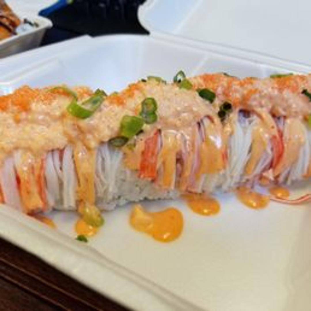 A large and elaborate sushi roll often containing a variety of ingredients such as tempura shrimp, crab meat, avocado, cucumber, and spicy mayonnaise. Typically topped with tobiko or other garnishes and served with eel sauce.
