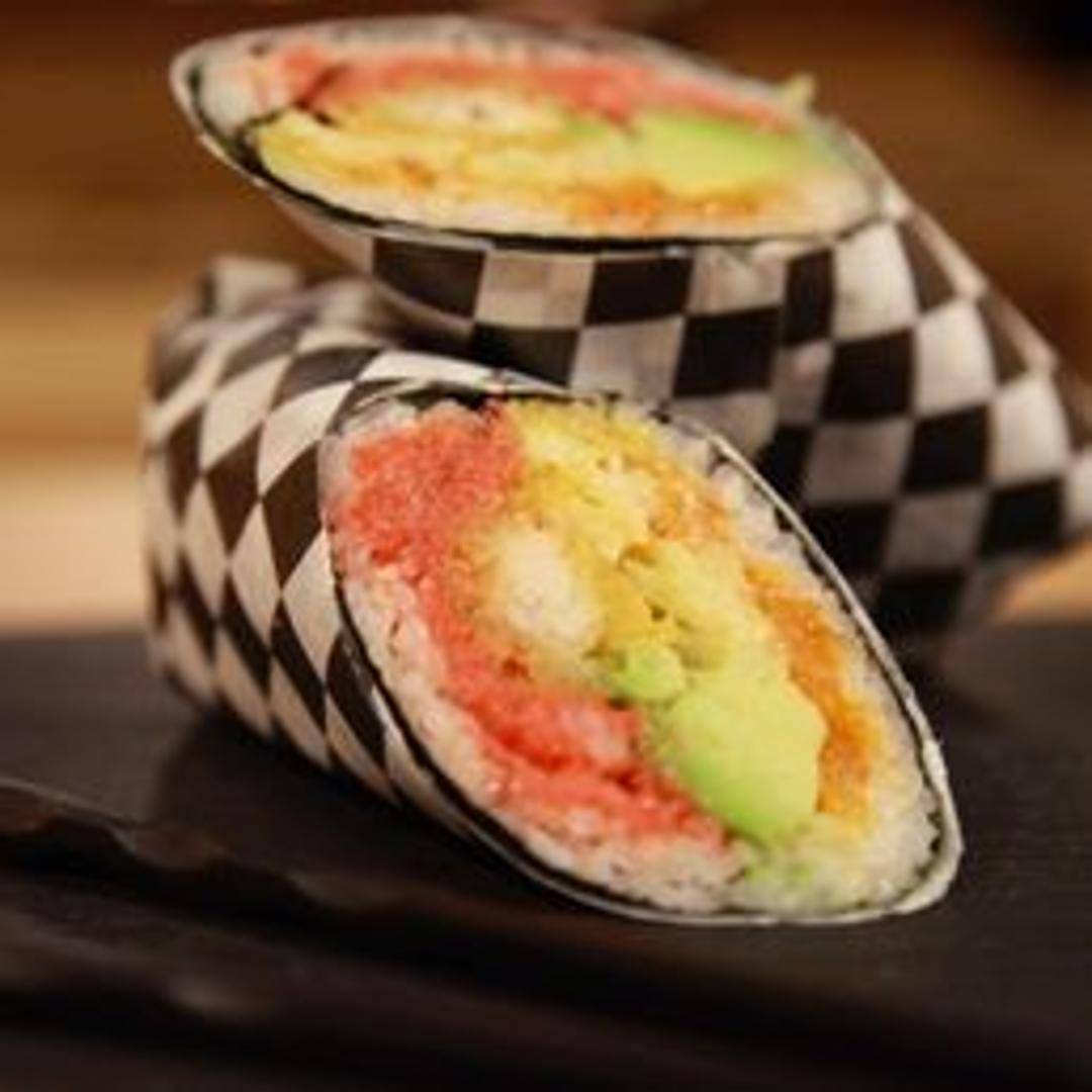 A unique fusion dish combining the freshness of sushi with the convenience of a burrito. Contains [Insert Ingredients here; e.g., rice, seaweed, your choice of protein (tuna, salmon, chicken, or tofu), avocado, vegetables, and a signature sauce].