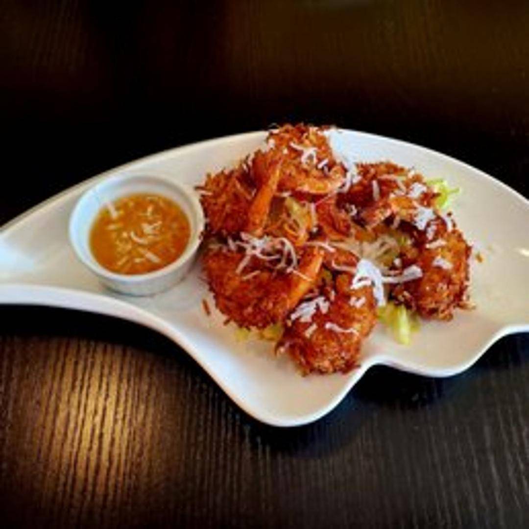 Succulent shrimp coated in shredded coconut and deep-fried to a golden brown. Served with a sweet chili sauce.