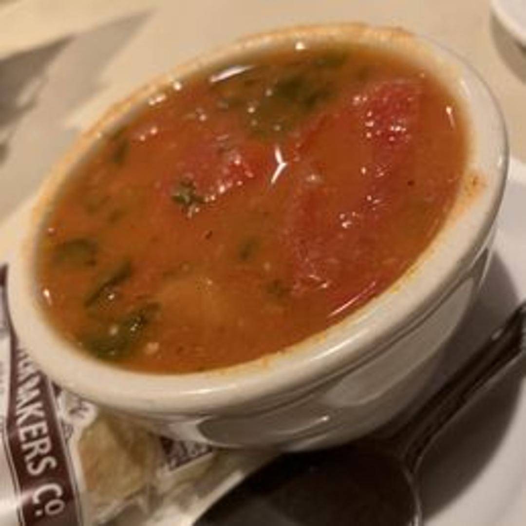A hearty and flavorful Italian vegetable soup, packed with fresh garden vegetables, beans, and pasta in a light tomato broth. Served with a crusty roll.